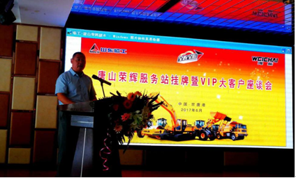 On June 29th, SDLG, hand in hand with Weichai Power, celebrated together the establishment of Tangshan Ronghui Service Station of SDLG and successfully held the forum to express gratitude and thanks to VIP big customers in Jingtang Port. Tang Junbin, deputy general manager of the marketing company, relevant leaders of Jingtang Port as well as such VIP customers as Fuxing Fleet, Heyun Fleet and Wanli Fleet were invited to attend the forum, and more than 200 distinguished guests witnessed the official establishment of “Tangshan Ronghui Service Station”.