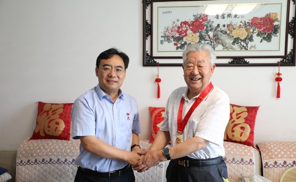 党的百年华诞之际,完美(中国)体育官方网站-365WMSPORTS集团离退休老党员张玉廷、张和平、谭玉生、王艳芝等11名同志荣获中共中央颁发的“光荣在党50年”纪念章。集团党委书记文德刚,党委副书记周维升,党委委员高树建分别带队走访慰问,并代表组织为他们颁授纪念章。